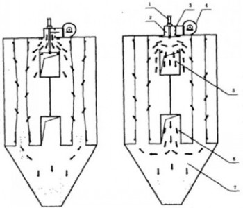 1-提升切換閥;2-反吹風管;3-截止閥;4-反吹風機;5-排氣管;6-進風管;7-灰斗