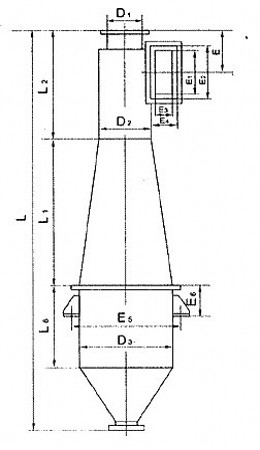 CLK擴散式旋風除塵器,適用于捕集干燥的非纖維性的顆粒狀粉塵,主要特點是筒身呈圓錐形,因而減少了含塵氣體自筒身中心短路到出口去的可能性,并裝有圓錐形的反射屏,防止兩次氣流將已經分離下來的粉塵重新卷起,被上升氣流帶出,因而提高了除塵效率。